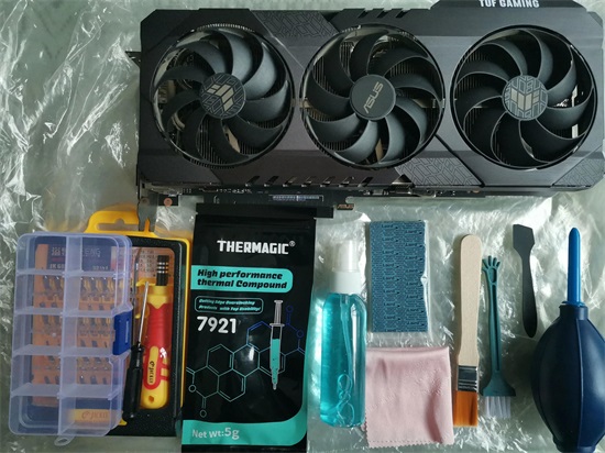 小号螺丝刀(带磁力)、导热硅脂、导热垫、酒精(乙醇水溶液)。软毛刷、刮刀、擦布、吹气球,一包餐巾纸备用。