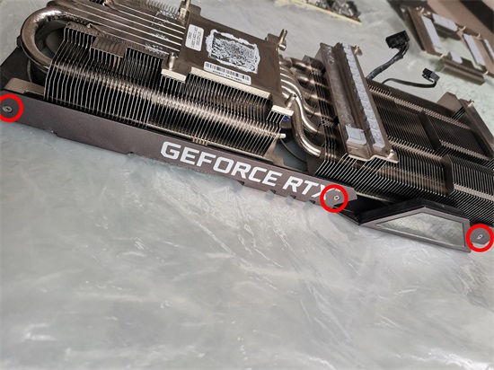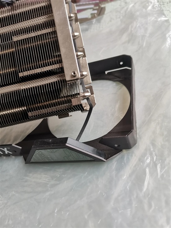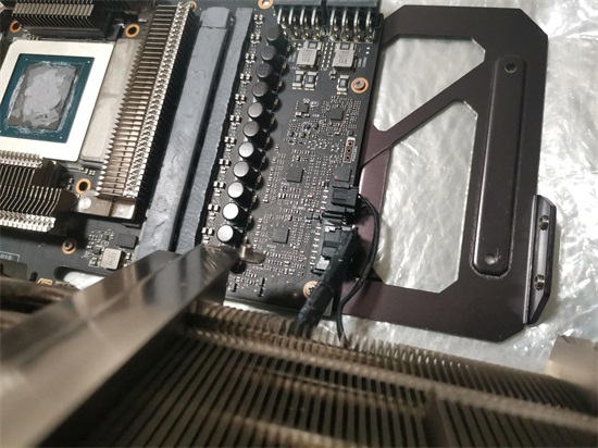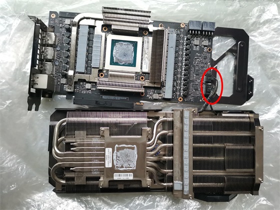 不过要注意显卡PCB和散热模组之间有供电线连接,分离时切忌大力出奇迹,某些高端型号的显卡还配有RGB灯光供电线,我这块显卡也有,将PCB和散热模组分离后,记得把所有线都拔掉。
