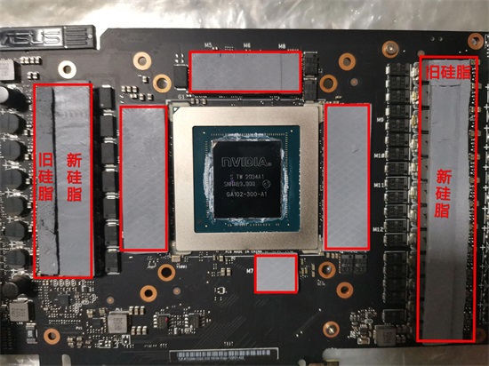 导热垫比对下所需的大小,再用美工刀剪出来,最后再贴上去压紧,保证不会掉落就是了。硅脂可以在中间挤一点就行,最好是采用“X”形涂法。