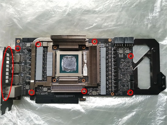 这些螺丝的作用是将PCB、散热模组固定在一起。如果拧下所有螺丝后,仍然无法分离,也不能大力出奇迹。某些显卡的散热模组还会与视频接口的IO挡板固定在一起,还需将这些地方的螺丝拧下来才可以分离PCB和散热模组。