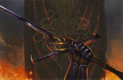 它是一柄长柄剑,长爪比长剑长,比双手巨剑短,为一手半剑,通常背在身后。