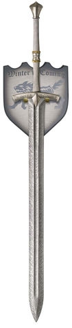 是一柄融化史塔克家族的寒冰而成的双剑之一。剑刃上有红黑两色波纹,剑鞘由镀金樱桃木制成,由上过油的红皮革包裹,装饰着纯金狮子头,狮子有红宝石的眼睛。