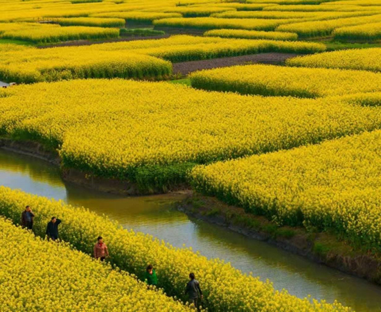 比起“苔花如米小”,油菜花是朵大的。比起带刺的玫瑰,油菜花是温顺的。比起高贵的“花中之王”的牡丹,油菜花是极其渺小的。比起高雅的梅花,油菜花是实惠的。它与众不同,绽放着自己长长的花期,自顾自地美丽着这个世界。所以余邵诗云:“油菜花开满地黄,丛间蝶舞蜜蜂忙;清风吹拂金波涌,飘溢醉人浓郁香”。