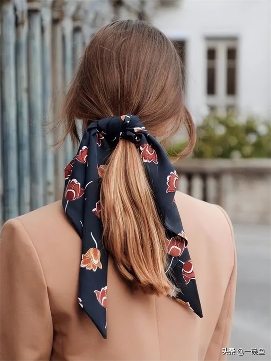 ins、时尚博主们的出街照都有丝巾出现,用在衣服、包包上就很有味道,用在头发上更是个加分项。
