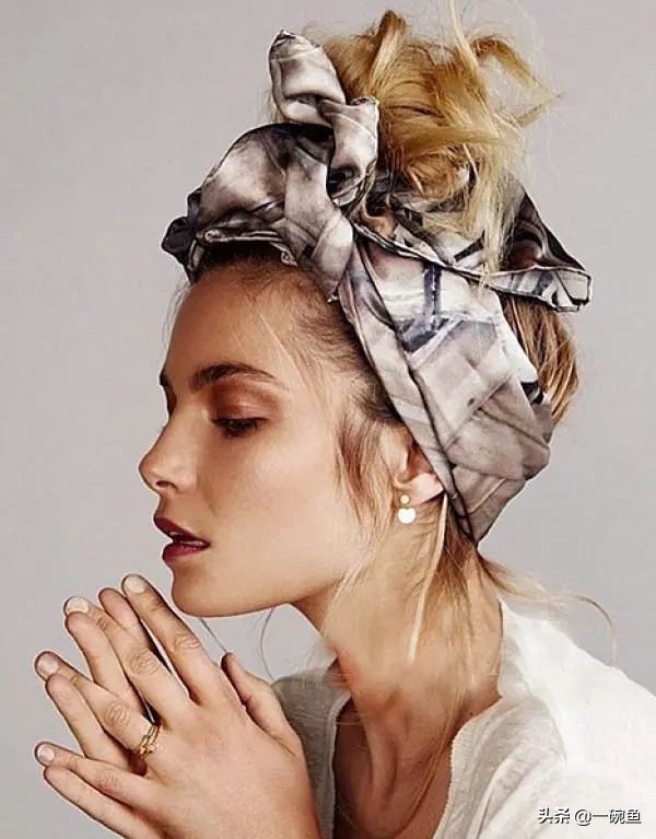 无论你是长发还是短发,都可以用丝巾编发,丝巾的作用就是能让你立马变得鲜活灵动。