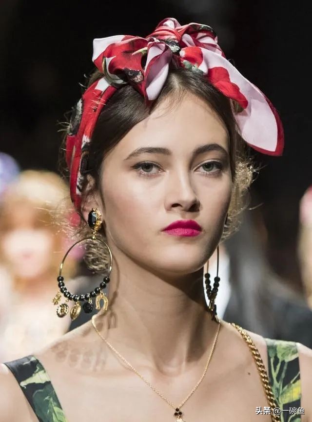 不同于丝巾盘发、当发箍用,丝巾扎发可以是俏皮可爱、古灵精怪。
