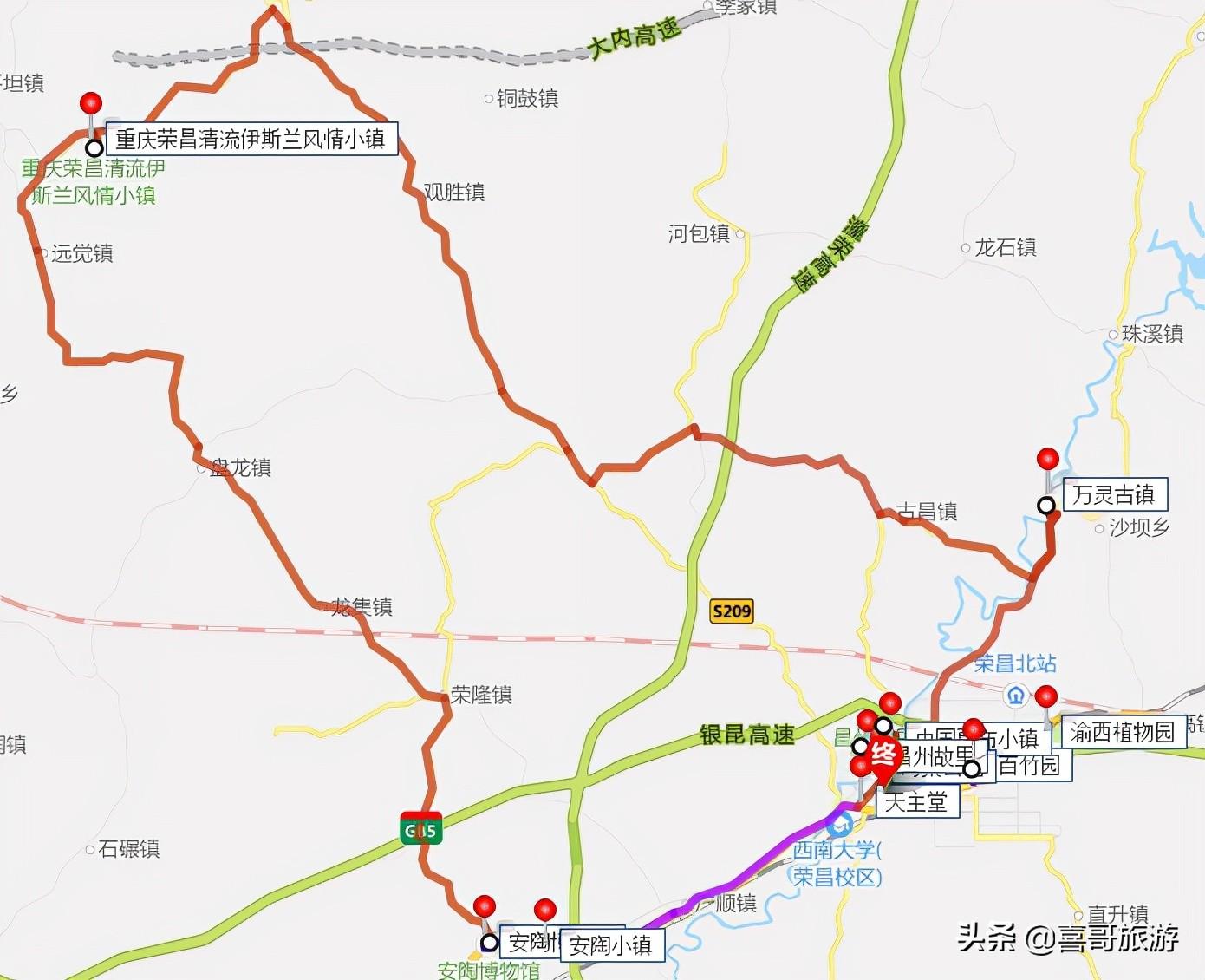 2、重庆荣昌区十大景点自驾游行程路线:重庆荣昌区-海棠公园-昌州故里-中国夏布小镇-百竹园-渝西植物园-万灵古镇-重庆荣昌清流伊斯兰风情小镇-安陶博物馆-安陶小镇-天主堂-重庆荣昌区。