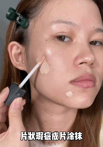 先把遮瑕液呈片状涂抹在需要遮瑕的部位;
