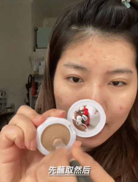 遮完之后用散粉定个妆就ok啦,痘印一秒消失~