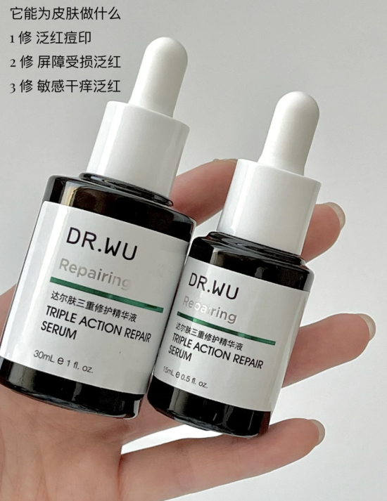 DR.WU是最近很的国货护肤牌,这支三修精华可以应对皮肤的各种泛红。