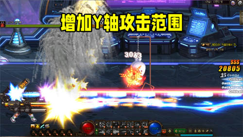 FSC-7是王小妹的一个主力输出技能,但是这一个技能Y轴攻击范围非常小,不在一条线上的怪物基本上就直接打空,打团打空也是常有的事情,但在这一次优化后,可以看到我们错开2个身位的距离,同样可以打到Y轴的沙包,这一个新增的Y轴追踪还是不错的,可惜Y轴的距离还是不能太远。
