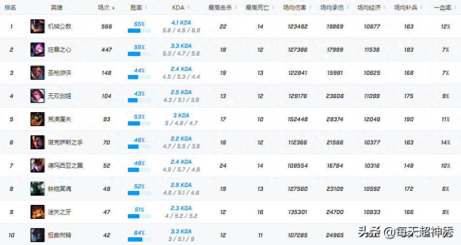 再看Marin选手的英雄使用情况,除了招牌英雄兰博、凯南、剑姬、鳄鱼、纳尔、大树以外,Marin还能玩转热门上单英雄卢锡安、诺手、德玛西亚之翼,以及铁男,英雄池深度不减当年。