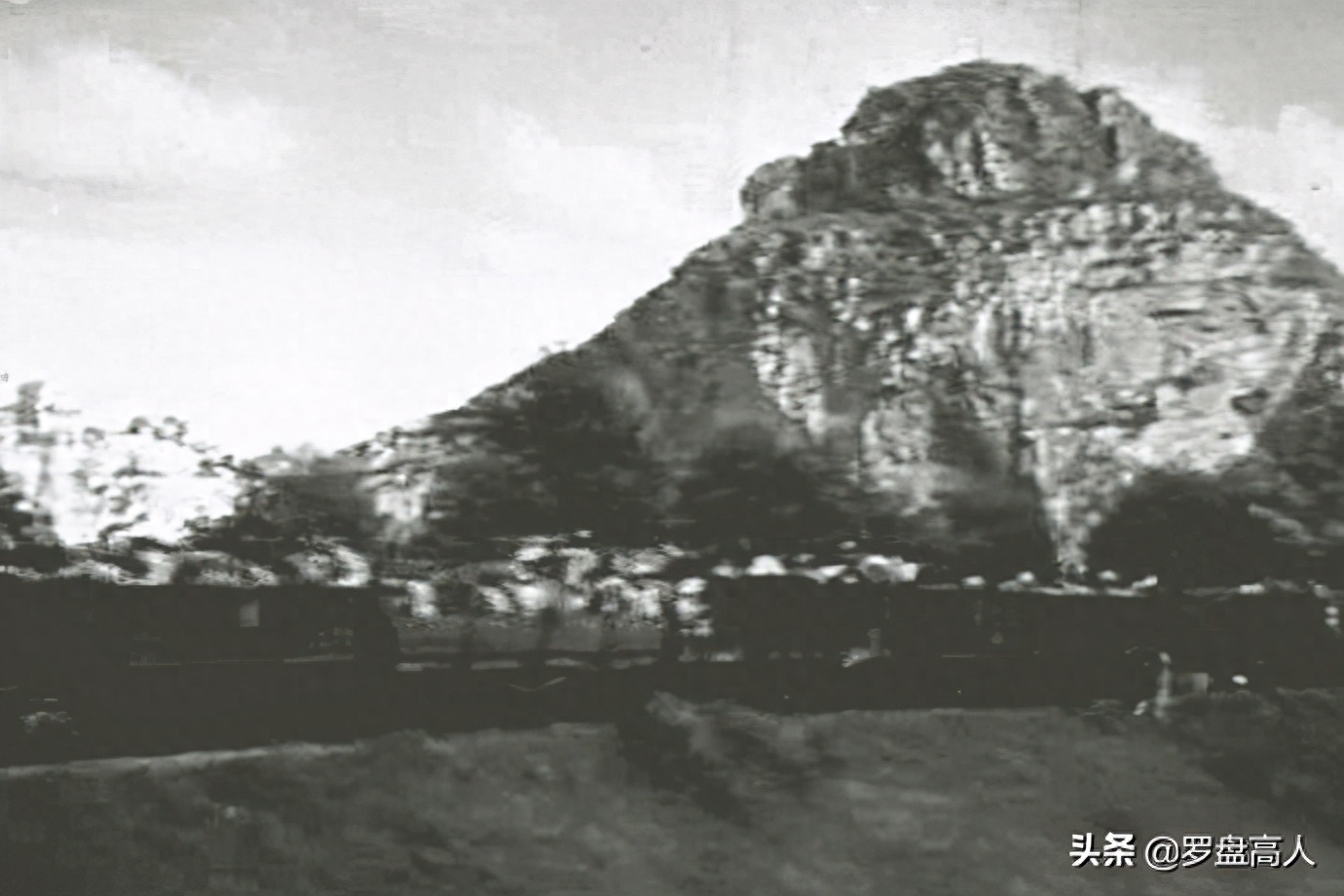 1944年,湘桂铁路上,火车经过桂林南溪山旁边,观看到坐火车逃难的人们。