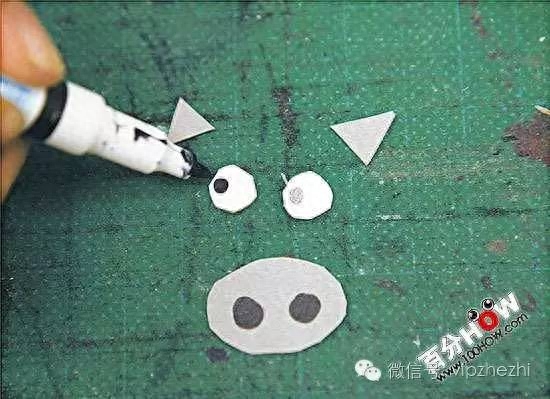 5,再继续将眼睛、鼻子也粘在圆柱上,形成小猪的脸蛋。最后,在小猪的屁股上粘上强力磁铁即可。