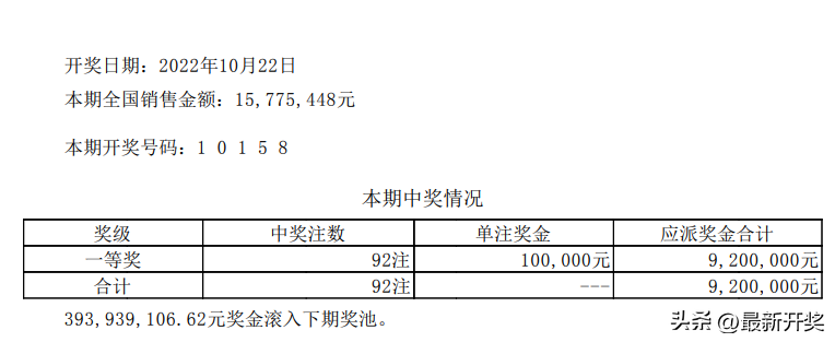 那最后的就是排列五了,由于排列五跟排列三天天都开的,是一对兄弟的,到哪里跟到哪里的那种,所以期数是一样的,而且排列五前三位的号码就是排列三的开奖号码的。只是多增加了后面两位的摇奖而已了,那么今晚的排列五第22281期开奖号码为10158,本次中出的注数为92注,排列五只有一个奖项,那就是号码对上,位置也要一样的,单注奖金为固定奖金10万元整。393,939,106.62元奖金滚入下期奖池。