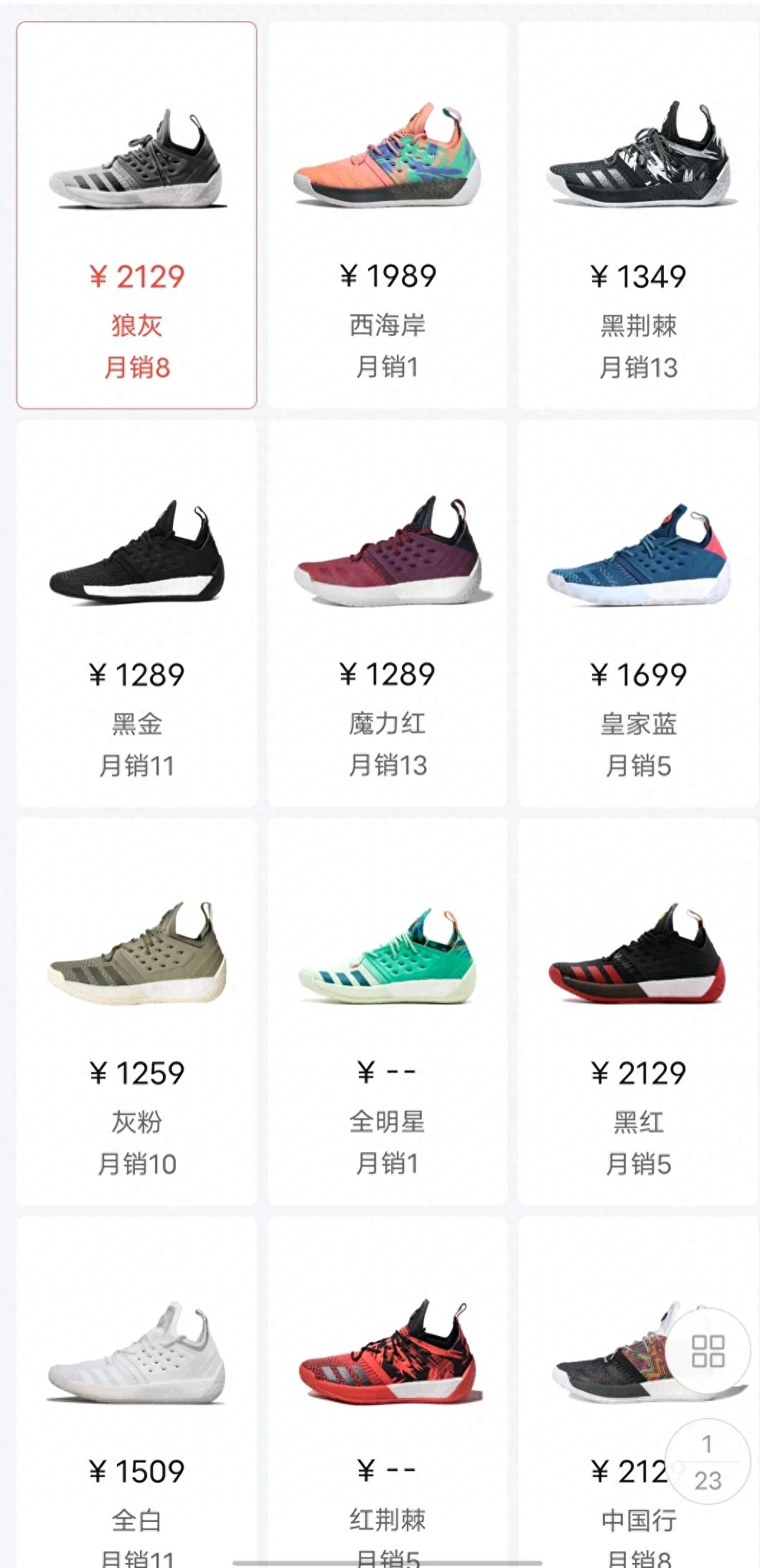如今的价格是这样的,这是某货APP上面的各种配色对应其价格,其实我们也可以理解如今这个价格,1.它是一双好鞋,像hyperdunk,pg2等等这种好鞋价格都是一去不复返 2.之前出的鞋会存在一种货量问题。