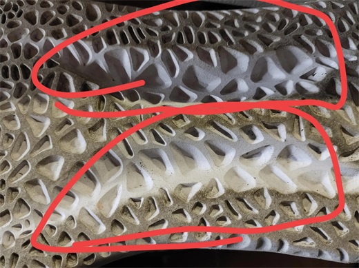 最初和一个月水泥地之后的磨损对比 右图纹路已经没了
