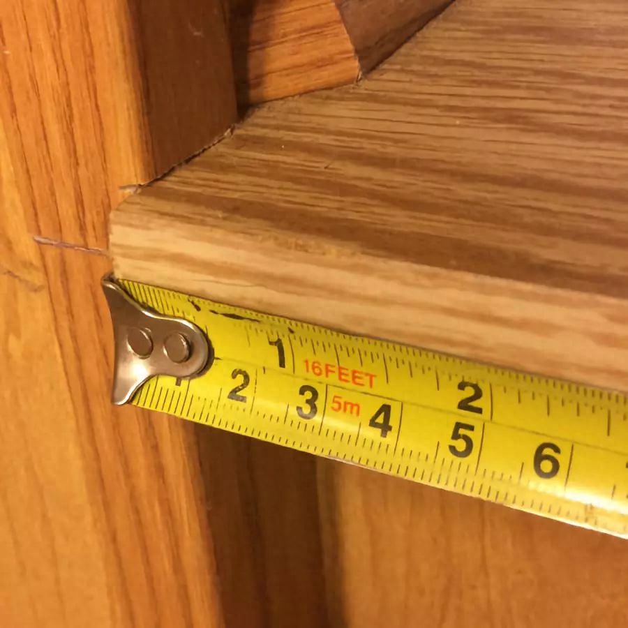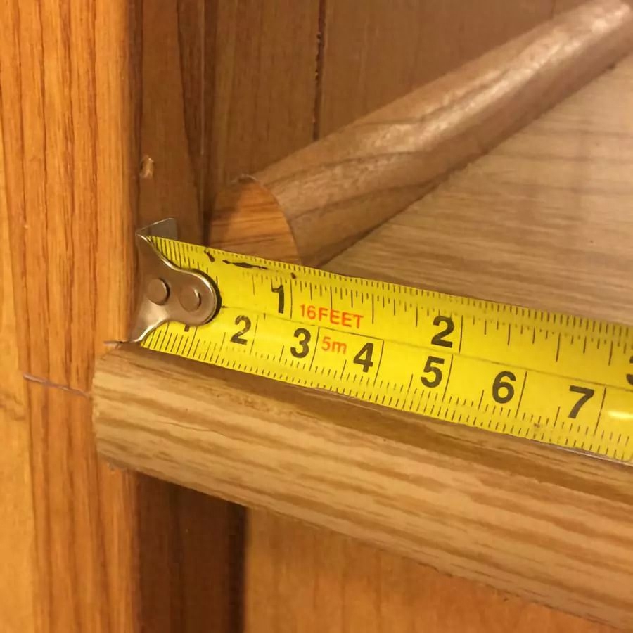 有的时候,我们需要让钢卷尺钩在一个基准边棱上测量长度,如上图所示。