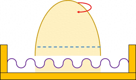 将土豆绕垂直轴旋转90度,如下图所示。这样,土豆底部的波纹也随之转动了90度。