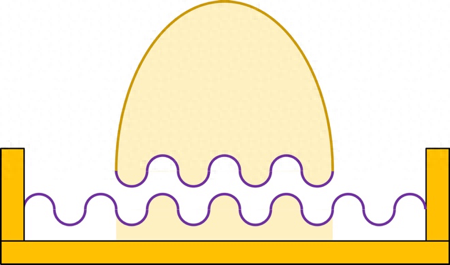 这时,擦出的薯片上下两面都有波纹,两面的波纹互相垂直。底部波纹的最高点高于上部波纹的最低点,这样薯片表面就出现网格状的镂空点。