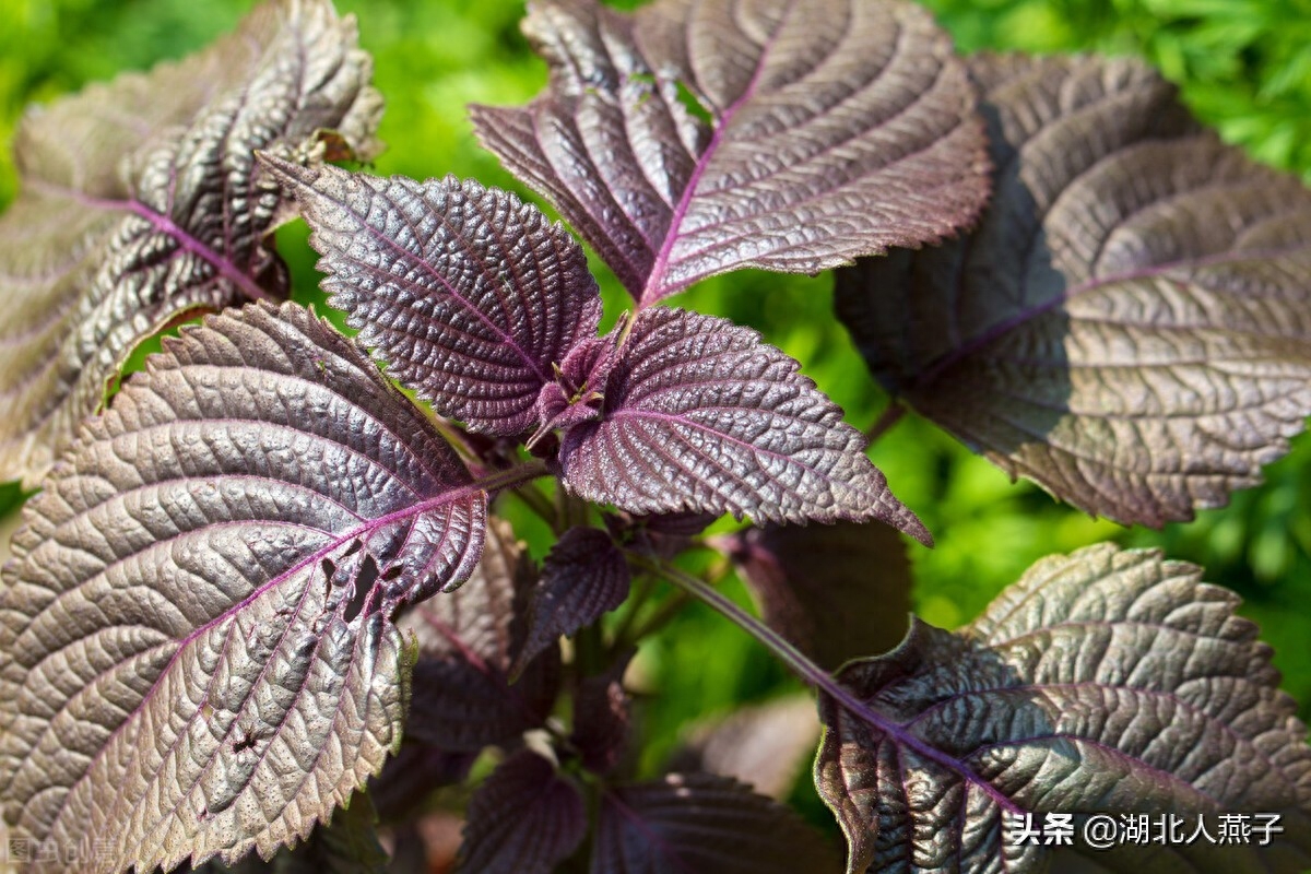 紫苏整个叶子都是深紫色,用来炖鲫鱼汤喝非常不错。