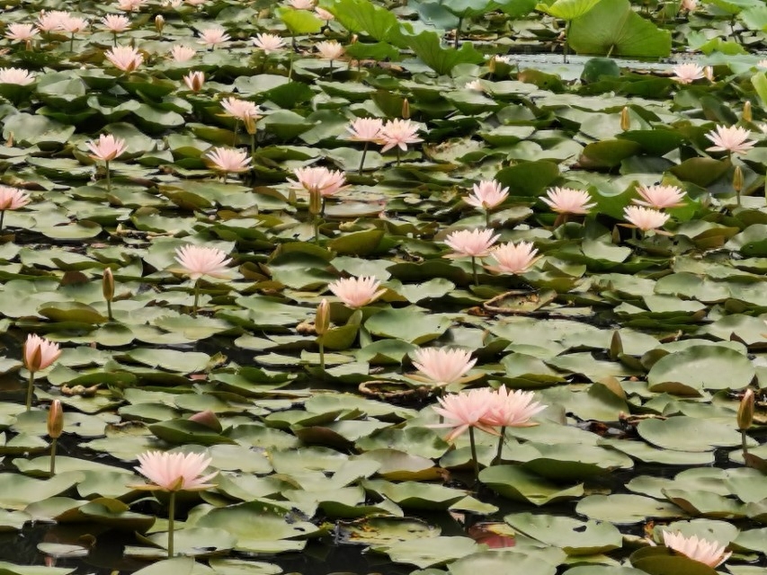 园区太大,所以,刚开始我们是比较漫无目的,经常可以看到很多家人带着自己的孩子在树荫底下扎帐篷,在湖边挂吊床等等,非常惬意。第一次下车的地方就是一个一片荷花池,不大不小的,但是还算是不错。很多的游客都下车欣赏。所以,我们也从众了,把车停在不远处,就走到池边看一看。花不是很大,但是都开得很艳,蓝天白云下,显得格外的美。