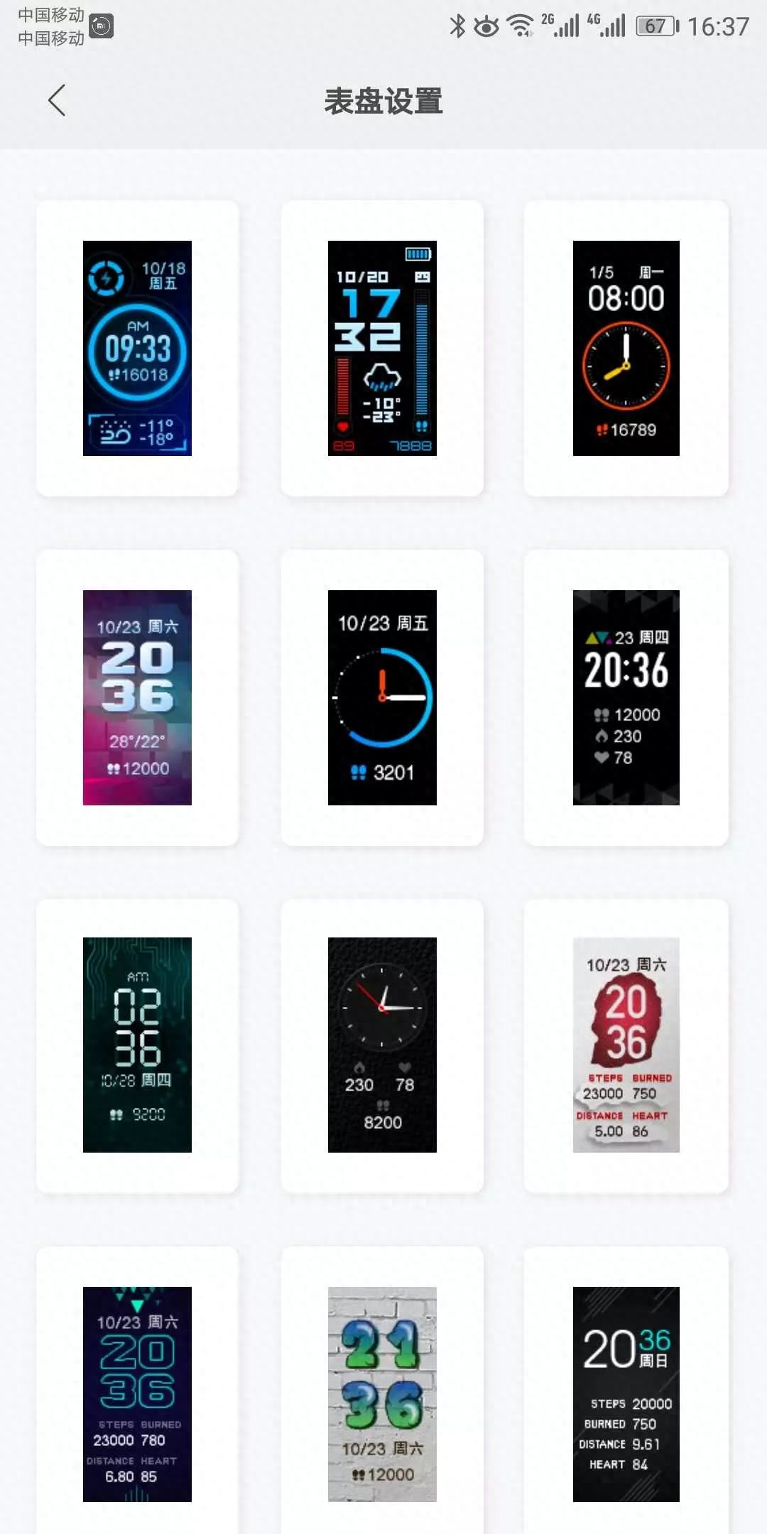 电子表盘更换,我们可以在手环上选择自己喜欢的表盘更换,在手机端还可以找到更多表盘样式,不过我看来看去也就有一个比较顺眼,萝卜白菜各有所爱,审美这事每个人不一样,就不多说了。