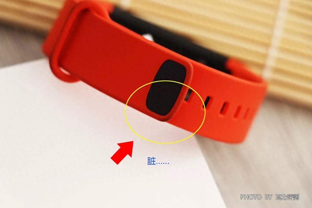 我们这款是斗鱼红,到写文章前我佩戴了大约有十天左右,大家从上面图中可以发现,表带已经有很多发黑的地方了,这也是同类产品比较致命的硬伤,除了黑色之外,你没有办法让它长时间保持干净。