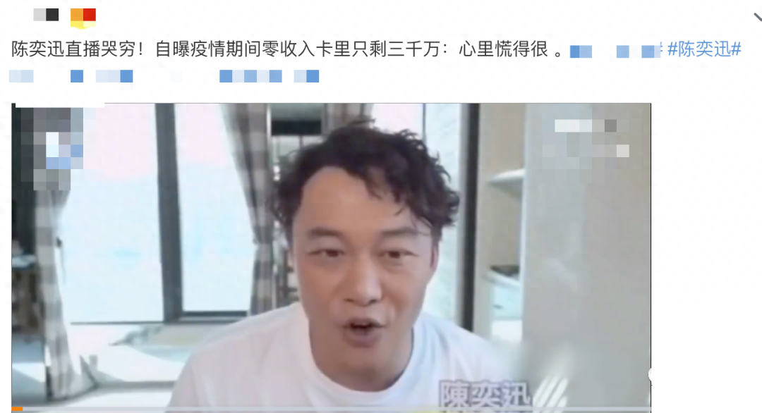 最近一句陈奕迅2020年直播时说的话又被翻出来发酵,说陈奕迅余额3000万还不知足,把他拿来跟张庭爽子等法制咖相提并论。