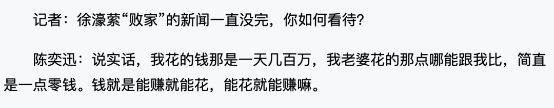徐濠萦的确是爱时尚,所以当新闻写“陈奕迅直播哭诉卡里只剩3000万时”,网友们统统一面倒的说:
