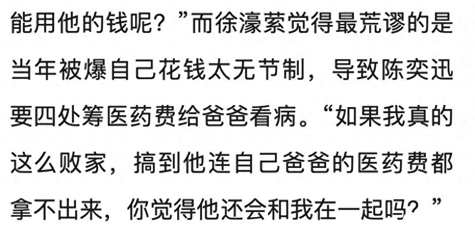 事实上,说徐濠萦败家陈奕迅第一个不接受,他甚至说过: