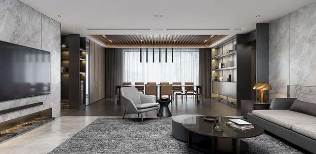轻奢风格属于低调中的奢华,平面吊顶也是经常使用,大量的线条让空间更加深邃。