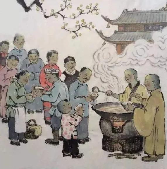 于是,“每到腊月初八,就吃杂拌粥”就变成了约定俗成的规矩。这个说法一开始在古印度流传,随着佛教传入中原,这种习俗也跟着迁移过来。随着佛教的兴盛,四海八方的佛寺广建,一到每年的腊月初八这一天,