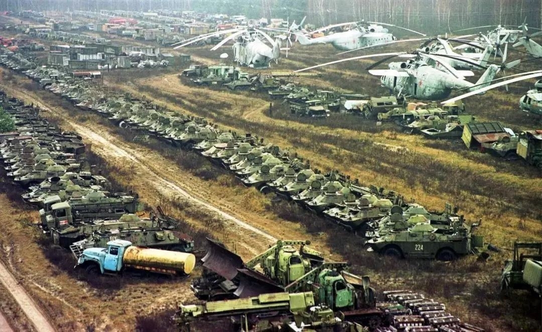 由于切尔诺贝利核电站的辐射量超乎想象,所以苏军在救援救灾中使用的2000多辆坦克、直升机、车辆等,在行动结束后全部被抛弃在当地,不再使用。