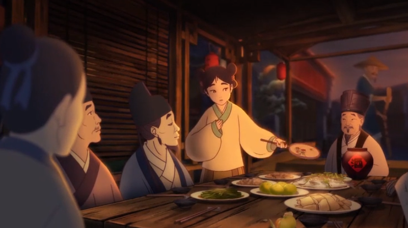 动画用人物饮酒作对的方式,融入了诸多古诗词。这些文化元素不仅营造出了独特的古风,还借由这些诗词表达了片中人物的心情,衬托出他们对待人生的态度。