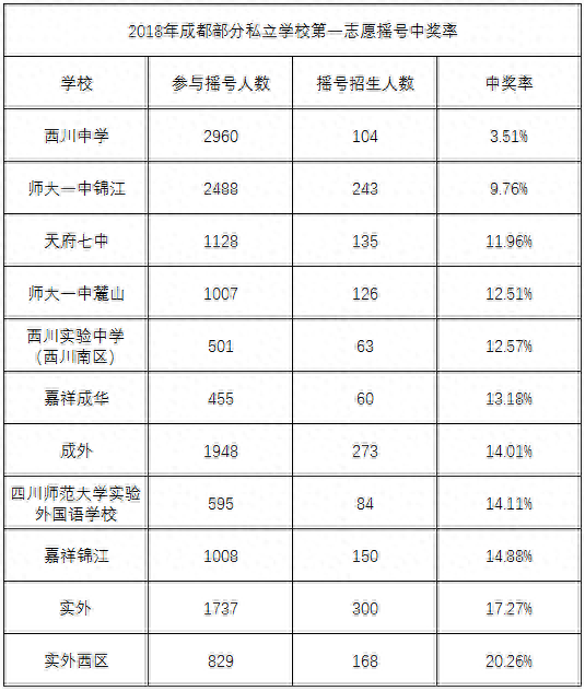 通过上图不难发现,师大一中两个校区的摇号率是非常低的,甚至排上了前几的位置!