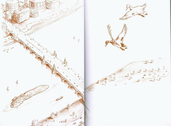 他们到了查尔斯河的上空。马拉先生说:“这里好一点。”于是,他们找到了一个舒适的地方来造窝。他们要脱毛了。