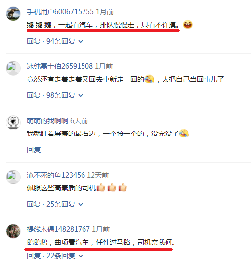 近日,网上一段"这群鹅啊,你们能走的再慢一点不,我们司机都等着呢"视频走红,网友评论7000多条。