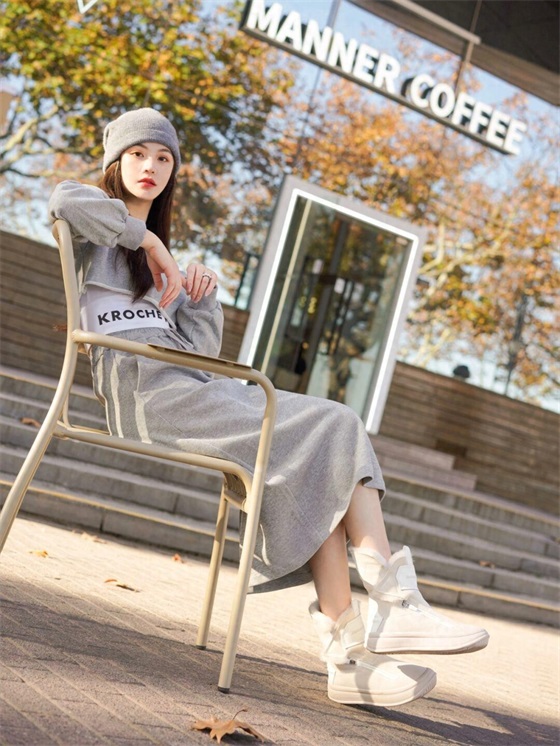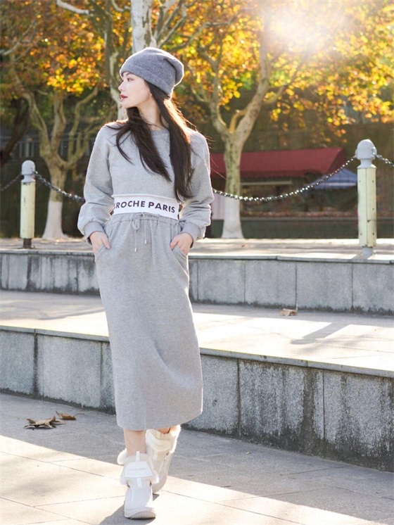 如果你的穿搭意识比较薄弱,那么在挑选内搭时可以借鉴博主的造型,选择一身套装,博主选到的是灰色的运动风套装,通过短上衣与半裙结合而成,保持了上下风格的和谐搭调,这样就不会因为搭配的错误而穿出尴尬效果了。