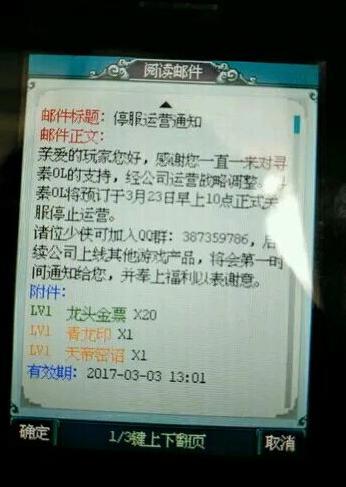 这里说一个小编听到的小道消息,在《寻秦OL》的论坛中不乏有玩家猜测游戏停运的原因是由于游戏内的期货大盘有赌博形式,然后被相关部门给查封了。当然,这只是一个部分玩家的猜测。至于事件的真实性无从考量。