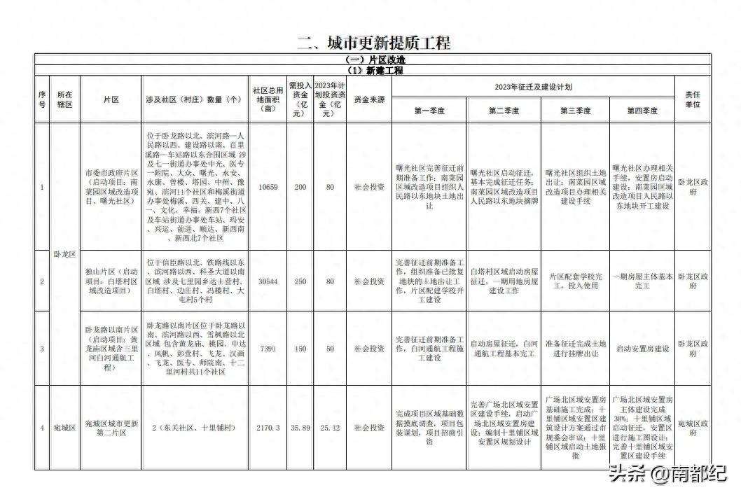 城市更新提质工程片区改造,按照这个计划,以后南阳的城中村会越来越少,但是依照现在的经济状况,这么大规模的城改行动,真的不知能不能的持续进行的动力。