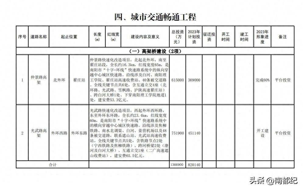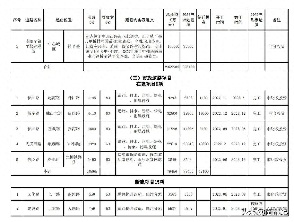 南阳市2023年城建领域项目