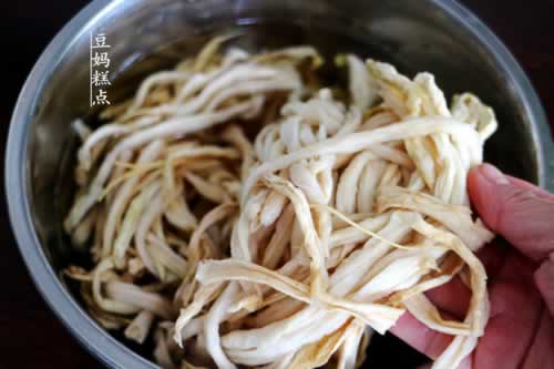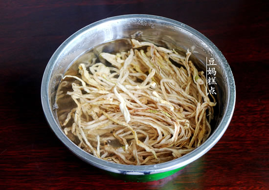 3、萝卜干浸泡的时间一定不要过长,看到泡大,变软了就可以了,差不多泡半个小时可以达到这个效果。