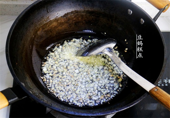 3、锅里多烧热油,倒入姜末、蒜末炒出香味。