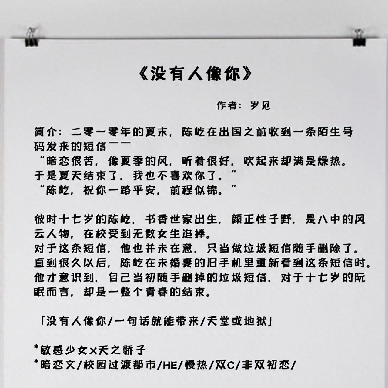 1、《没有人像你》作者:岁见