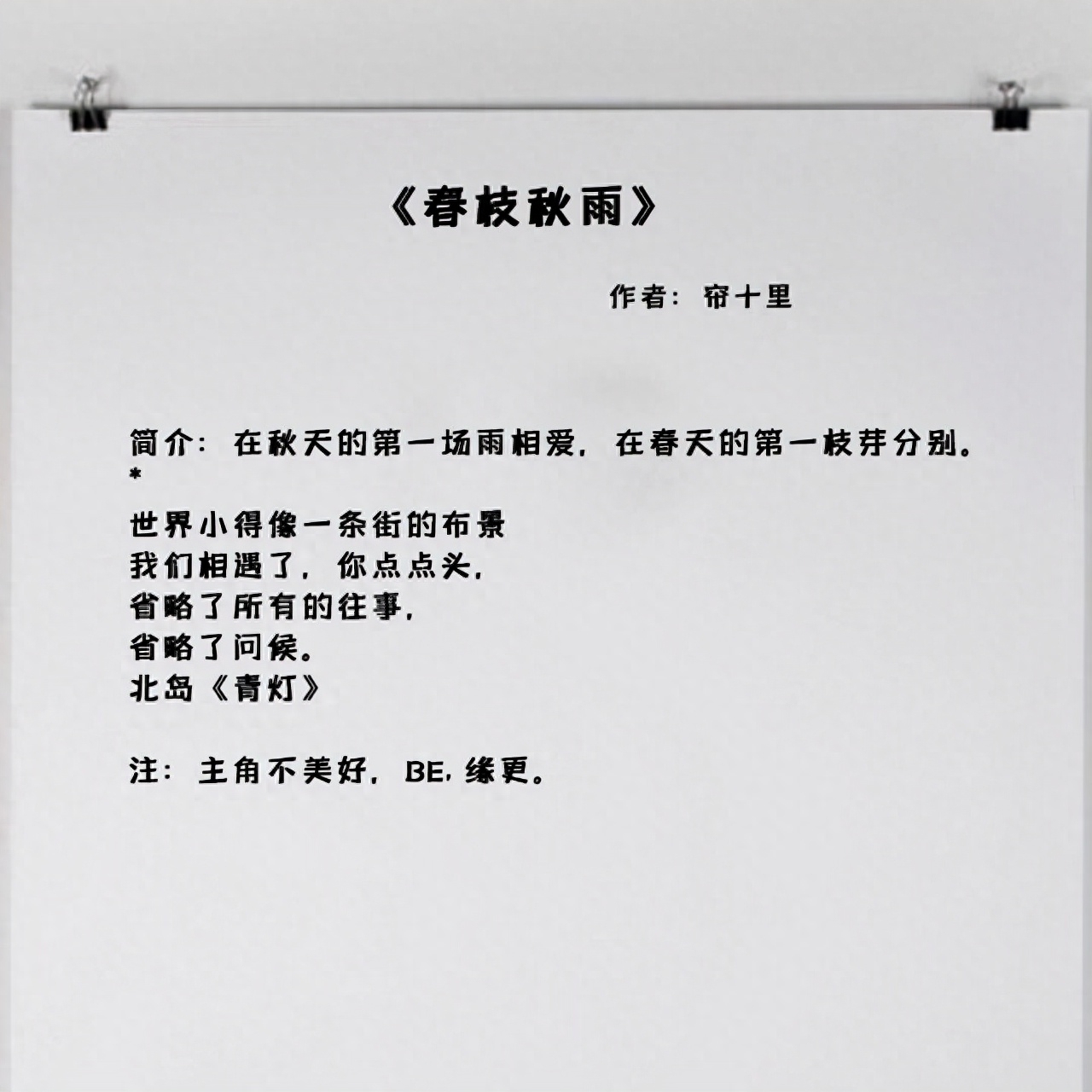 4、《春枝秋雨》作者:帘十里