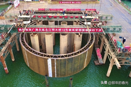 那么如何在水中修建承台呢?这里我们所使用的就是围堰,简单说来就是在水中用一个铁桶来把周围的水隔开,人为的创造一个干燥的施工环境。