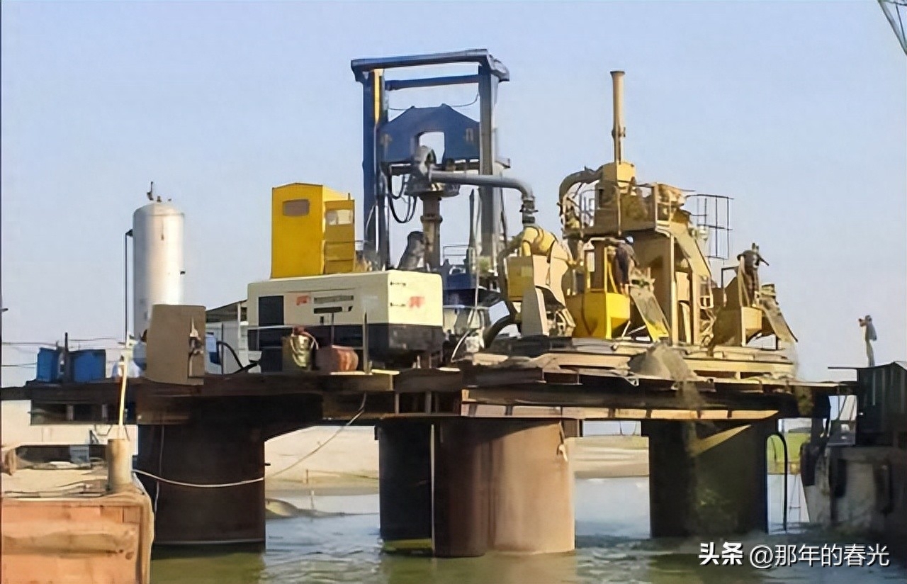 如果是在浅水的地方,可以通过回填的方式修建一个人工小岛,这样就可以在四周全是水的情况下得到一小块的陆地,我们直接就可以把机械和人员运到小岛上。然后在上面直接开始钻桩基础的孔,在钻好桩孔内灌注混凝土就可以把桩基础修好了。