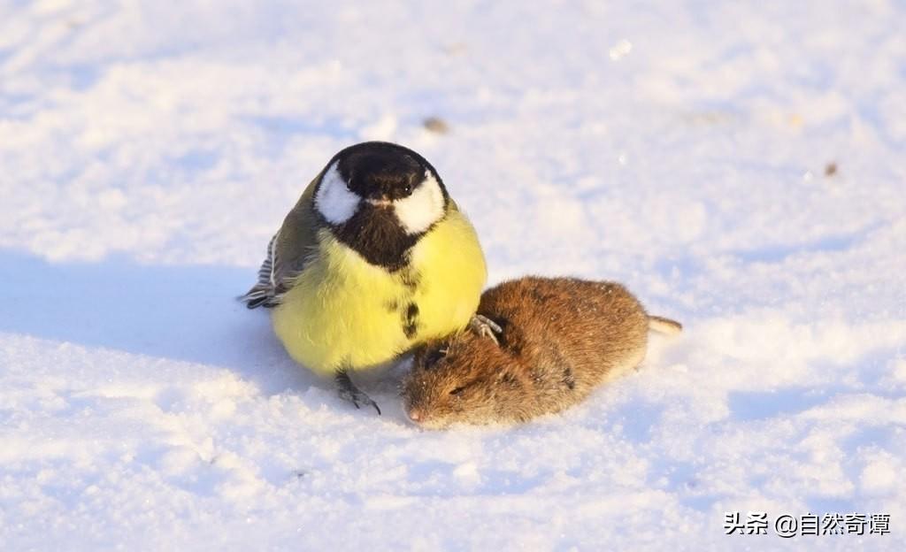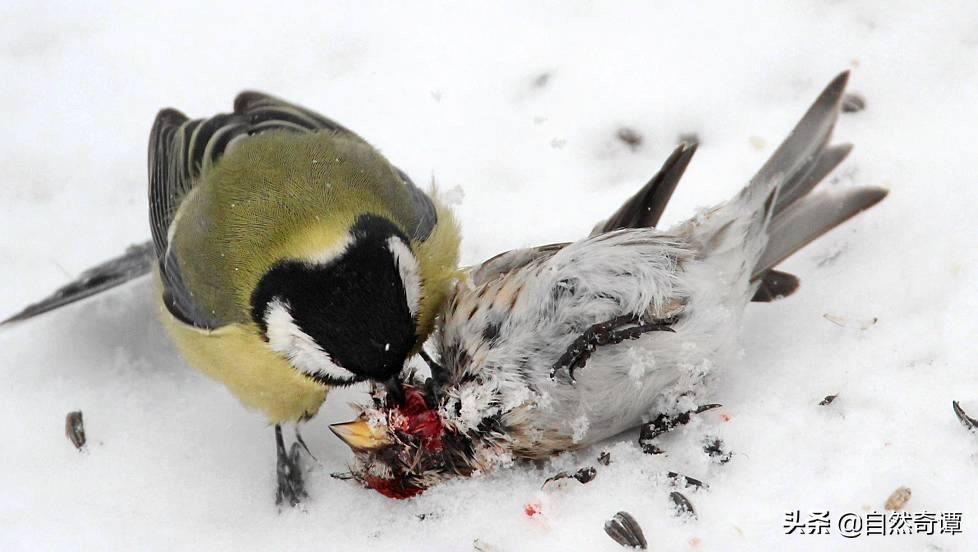 嫩黄色的羽毛,圆滚滚的身子,如果不是亲眼见过它踩在其他鸟类的尸体上嗑脑子,谁能想到大山雀竟然也是个食脑狂魔呢?