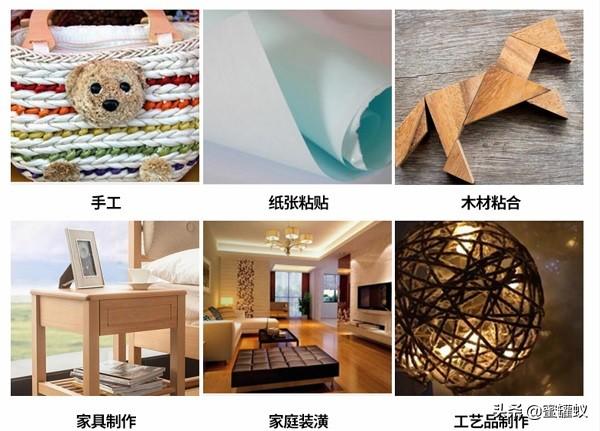 当然白乳胶除了针对木工家具之外还有其它用途,比如说,木材、纸张、工艺品、家具、装修、印刷、纺织、皮革、造纸等行业。